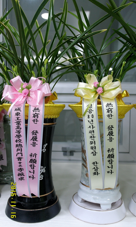총동문회와 80년사 편찬위원회에서 축하 화환을 보내주셨다.